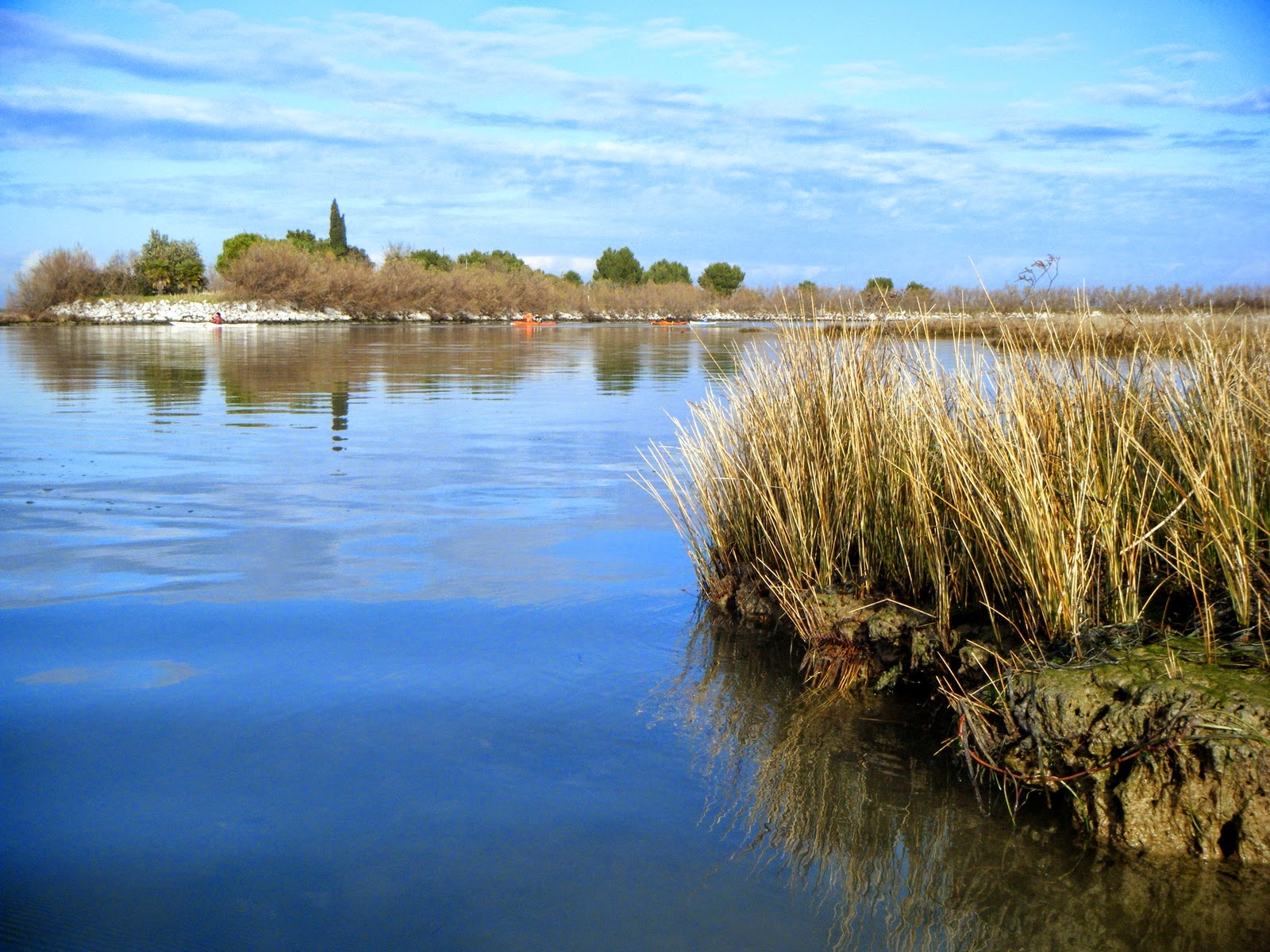 Che dire del meteo? Temperature gradevoli hanno indubbiamente reso piacevole la pagaiata ai 14 kayaker scesi in acqua dalla sede Nautisette, ma non si può dire altrettanto bene per la bassa marea in quanto al ritorno, si è dovuto affrontare qualche tratto di mare in cui di acqua c’era solo qualche centimetro per cui la pagaia affondava sovente nel pantano lagunare.
